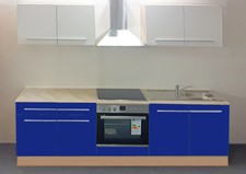 Küchenzeile Jazz 2 Küche Blau Weiß Hochglanz Küchenblock