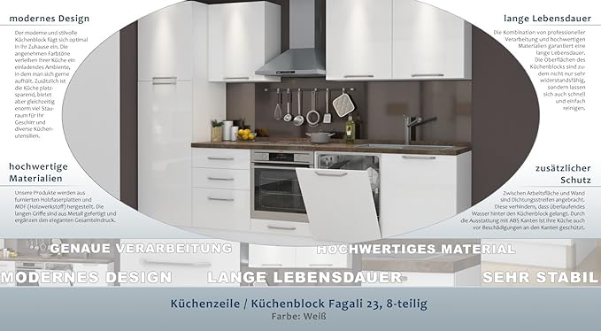 Küchenzeile Küchenblock Fagali 07 8 Teilig Farbe Weiß Weiß Hochglanz