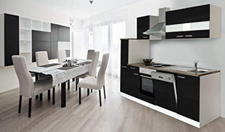 Respekta Küche Küchenzeile Küchenblock 280 Cm Weiß Schwarz Kühlkombi Designhaube