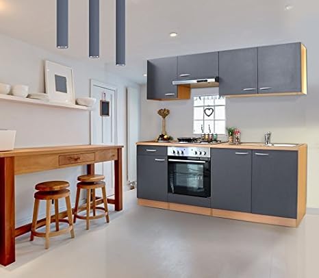 Respekta Küche Küchenzeile Einbauküche 210 Cm Buche Nachbildung Grau Kb210bge